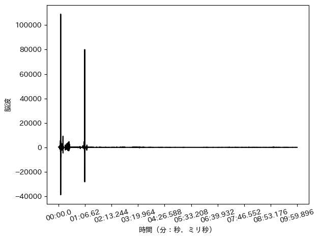 ax.set_xlabel("時間(分:秒.ミリ秒)")