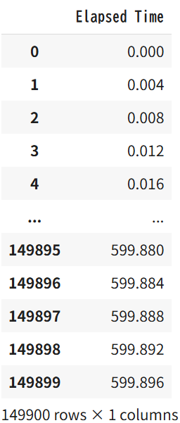twhunfifHz_time = pd.DataFrame(twhunfifHz_seconds, columns=column_name)