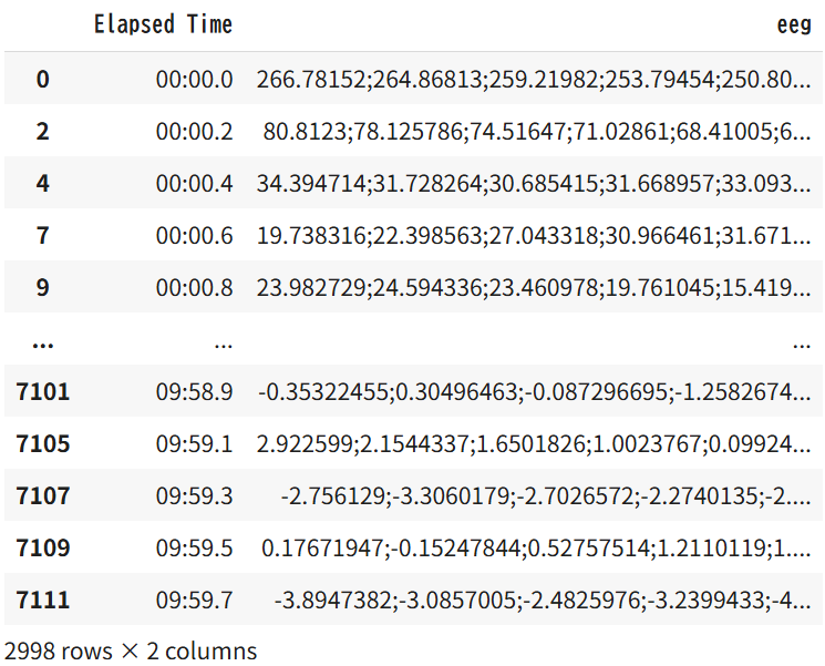 ‘Elapsed Time’ の行と、EEG の行を用いる。