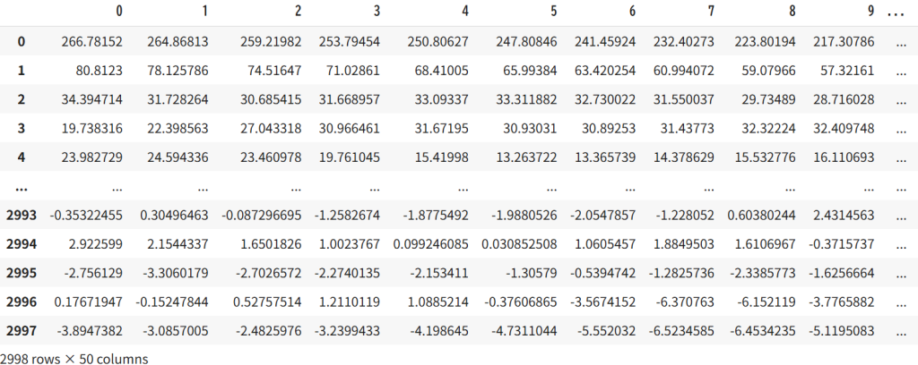 raw_list = [0] * (len(df_raw.columns) * len(df_raw))この変数にはデータを時系列の順番に入れていきたい。