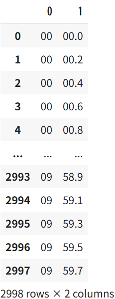 twhunfifHz_seconds[i] = "0" + str(int(twhunfifHz_seconds[i])//60) + ":" + str(round(twhunfifHz_seconds[i]%60, 3))