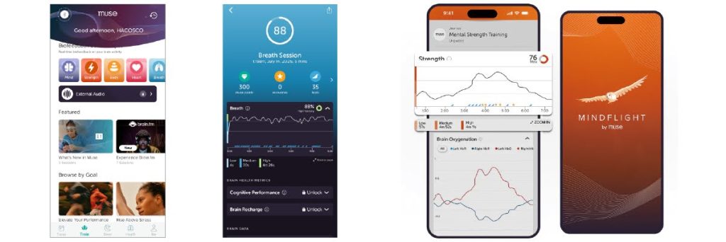 Muse S Athenaは、従来のMuse Sから大きく進化し、新たにfNIRS(機能的近赤外線分光法)センサーを搭載。脳血流の変化をリアルタイムに記録し、認知的努力や集中度の指標を可視化します。EEG(脳波)との組み合わせにより、研究やトレーニングで活用される解析手法を体験できます。カラーは「オパール」と「カーボンブラック」の2色展開です。