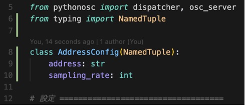 まずは、address にサンプリング周波数の情報を持たせます。今後の各調整も考慮し、NamedTuple型の Address クラスを作っておきます。