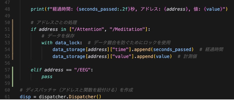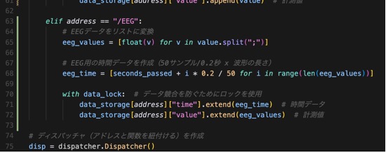 課題1を解決するために、data_storage で設定した maxlen を変更します。ただ、EEGと集中・リラックスで別の値を設定する必要があります。