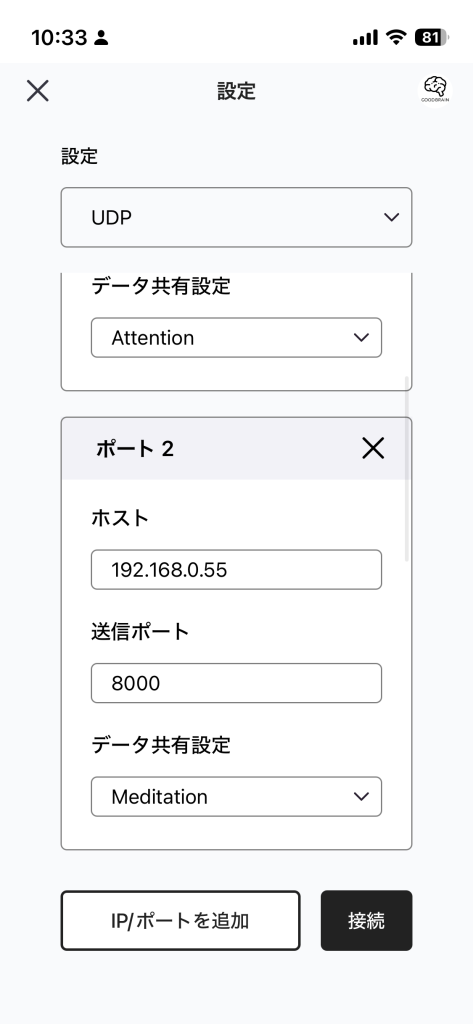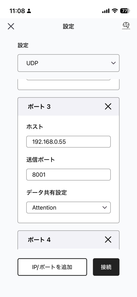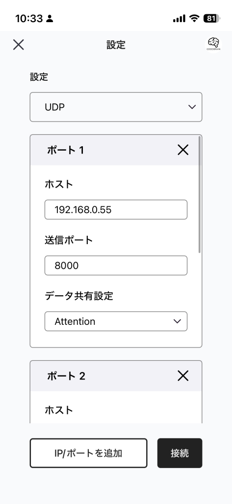 FocusCalm™ 複数台で試したいところですが、筆者の手元には1台しかないため、GB Focus アプリでポートを追加して試したいと思います。(FocusCalm™ を複数台お持ちの方は、ぜひ複数台でお試しください!)