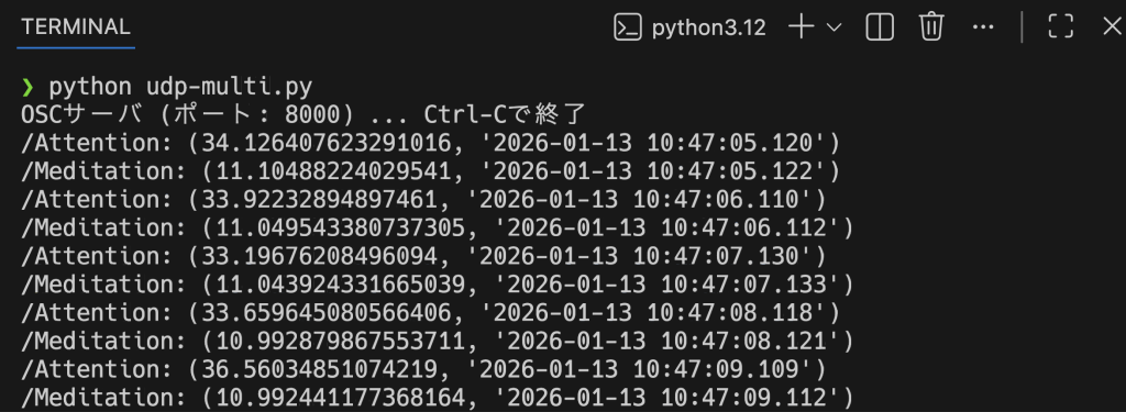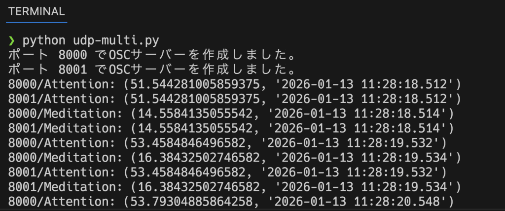 ここまでで、すでに複数台の脳波デバイスでのUDP計測を実現できました!次章では、rich というライブラリを使って計測データを可視化する方法を解説します。